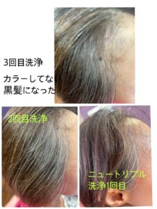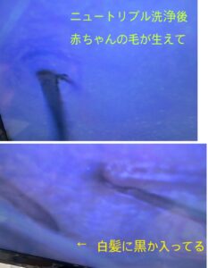 ↓下の画像のように髪の毛が黒くなり赤ちゃんの毛がでています。白髪に黒く入っています。