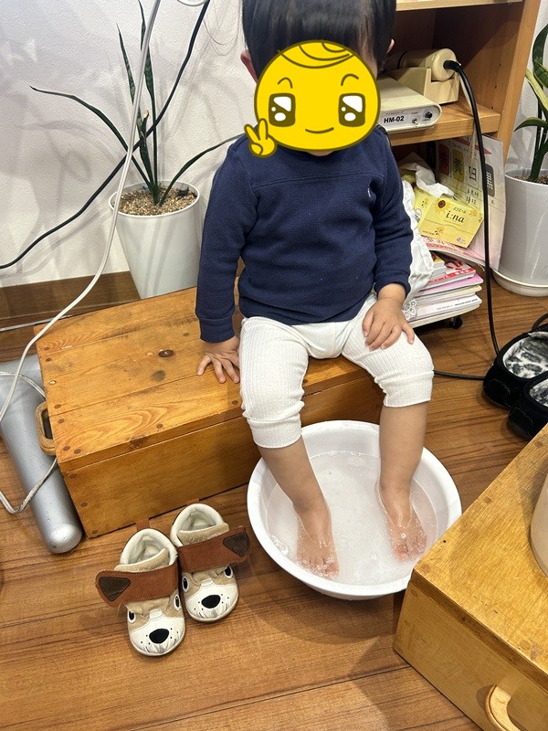 「僕もしたい!」っていったので手洗浄と足湯をしました。